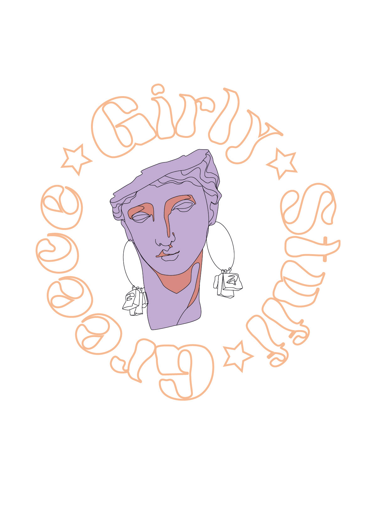 Logo and Identity design for the jewelry shop Girly Stuff - Greece. A mixture of seventies vintage and Venus was requested.